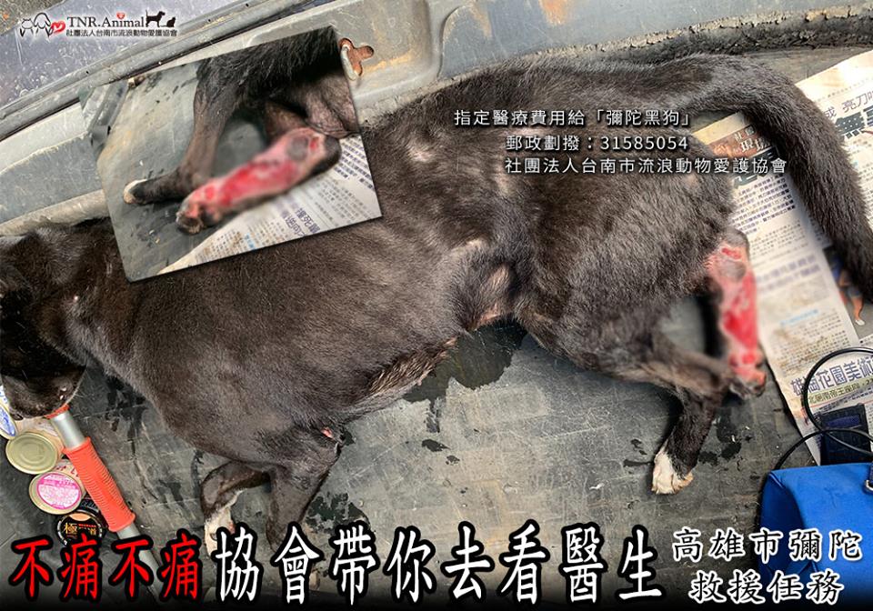 彌陀黑狗不負眾望,順利救援,目前已經送往醫院進行醫療。我們是默默守護外面孩子的協會,更是愛心爸媽的保護傘,團結大家的力量,所以我們一步一步才能走到今天,我們會繼續努力保護毛小孩,直到天塌下來為止。
