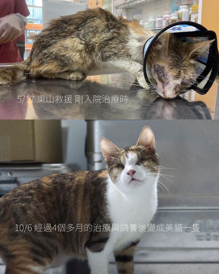 想想,這命運真的大不同。今年的五月中,她還是一隻流浪貓。雙眼潰瘍,滿臉沾滿了膿汁,瘦弱的不成模樣。但才四個多月,在醫護人員還有志工的照顧之下,看看她,變得乾淨又圓潤,洋溢著幸福感,判若兩貓了呀♡♡♡