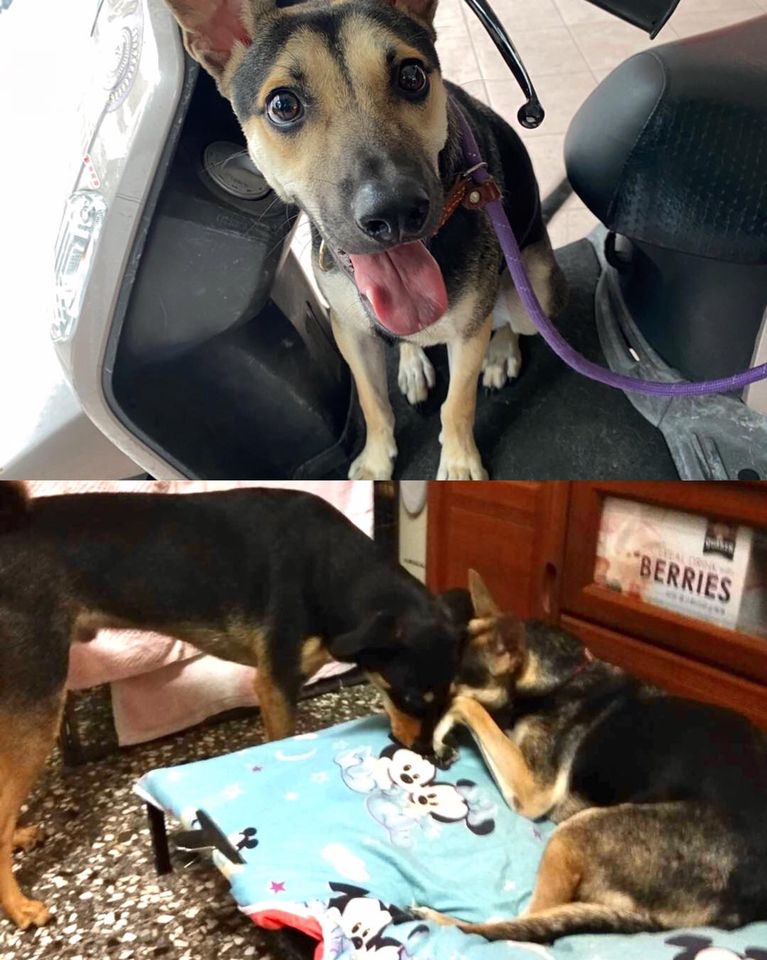 這一次新的領養人家是特地從台中下來看憨吉的,他們還帶了家裡的狗哥哥一起到台南來先跟憨吉互動看看,這緣份阿,真的是一見面就看得出來,憨吉一見到他們一家人,就自顧自的熱情的迎上去打招呼,還拼命的跟狗哥哥邀玩,狗哥哥雖然一開始有點不習慣,但沒多久後兩隻就追起來玩起相撲來了….